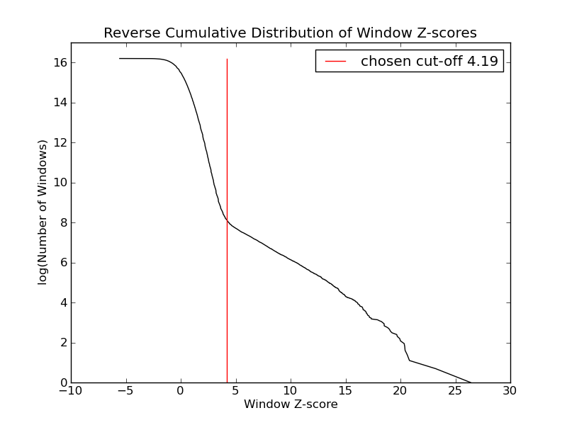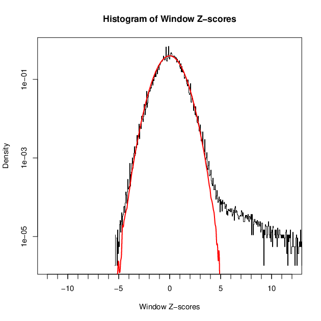 - 3396 windows are significantly enriched at FDR=10% (z-value cut-off: 4.19)